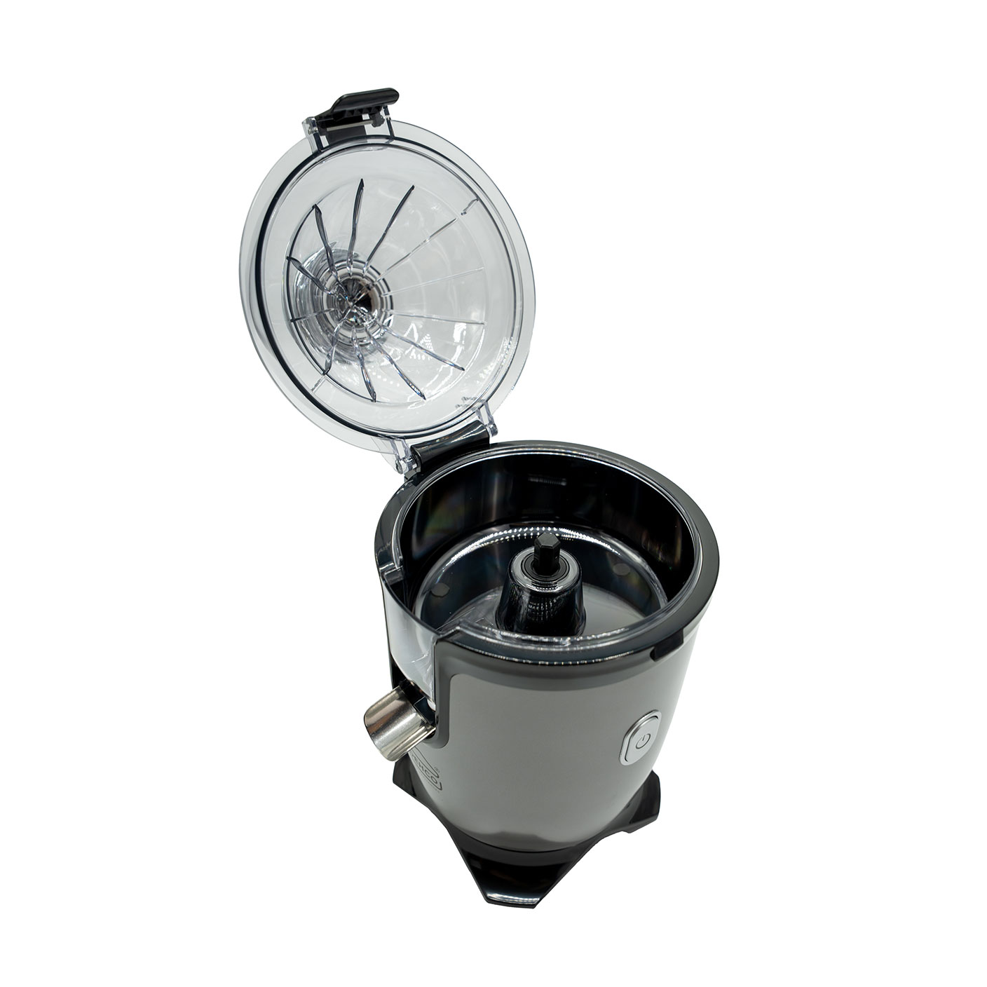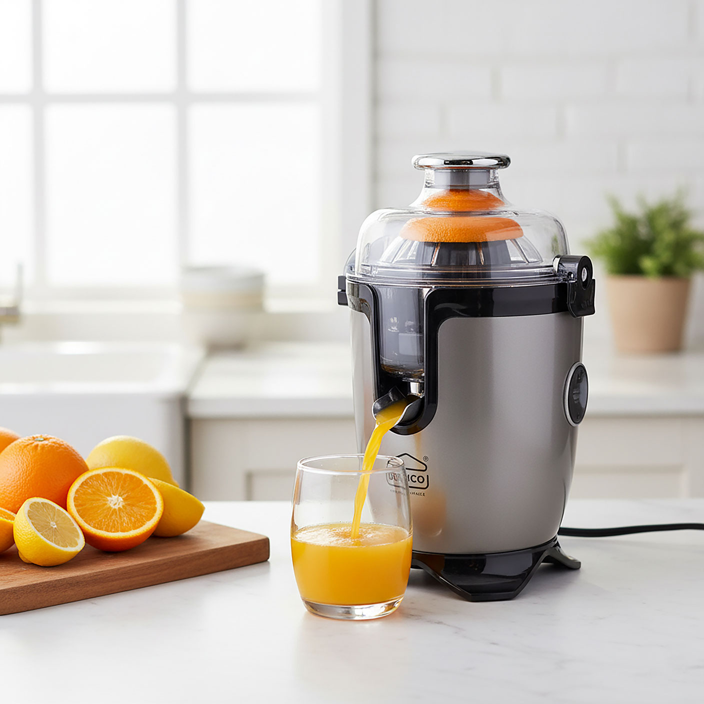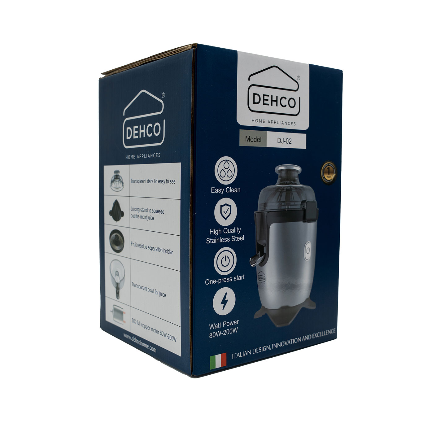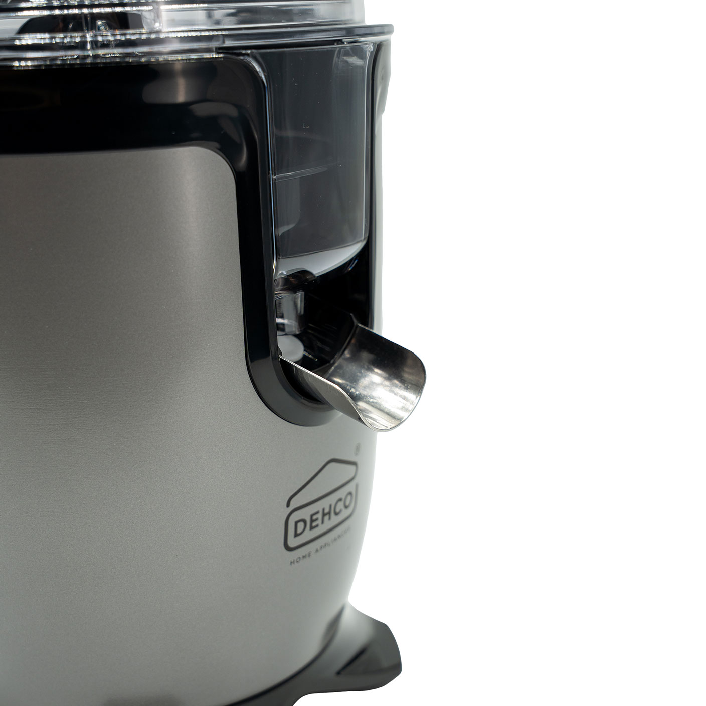 The Dehco Citrus Juicer DJ-02 packs 80-200W into a sleek SUS gray housing for effortless citrus extraction. The one-touch operation and auto-squeeze mechanism handle halved fruits like oranges and lemons cleanly, thanks to the anti-drip spout. Its half-fruit design maximizes yield while minimizing waste.